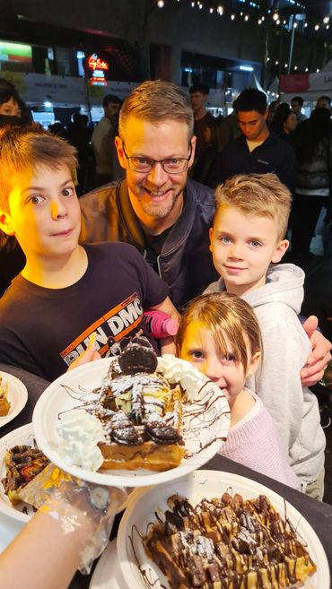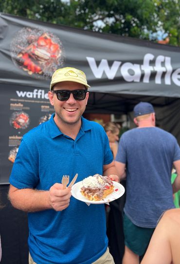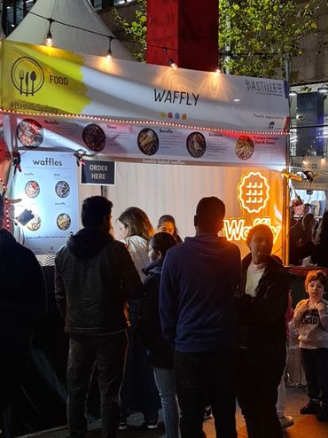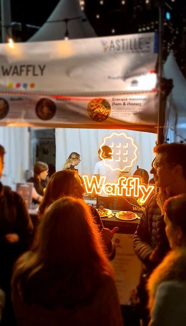 Delicious waffles, pumping music, smiling service and a creative night-time lighting create a vibe you can't miss.